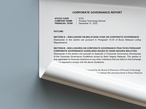 We are pleased to present to you our annual report, which provides a comprehensive overview of PRIVASIA Technology Berhad (“PRIVASIA” or “the Group”)’s financial performance, key achievements, and strategic initiatives over the past year. As we reflect on the challenges we faced during the pandemic, we are proud of our ability to navigate through the turbulence and deliver strong financial results in the last quarter.